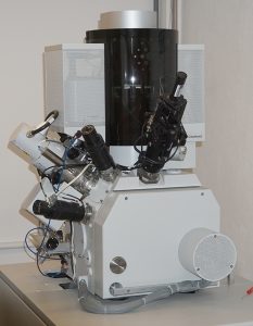 La station Dual beam FIB (FEI Helios 600 NanoLab) est utilisée pour la préparation par micro-usinage ionique de lames minces pour l’observation au MET.
